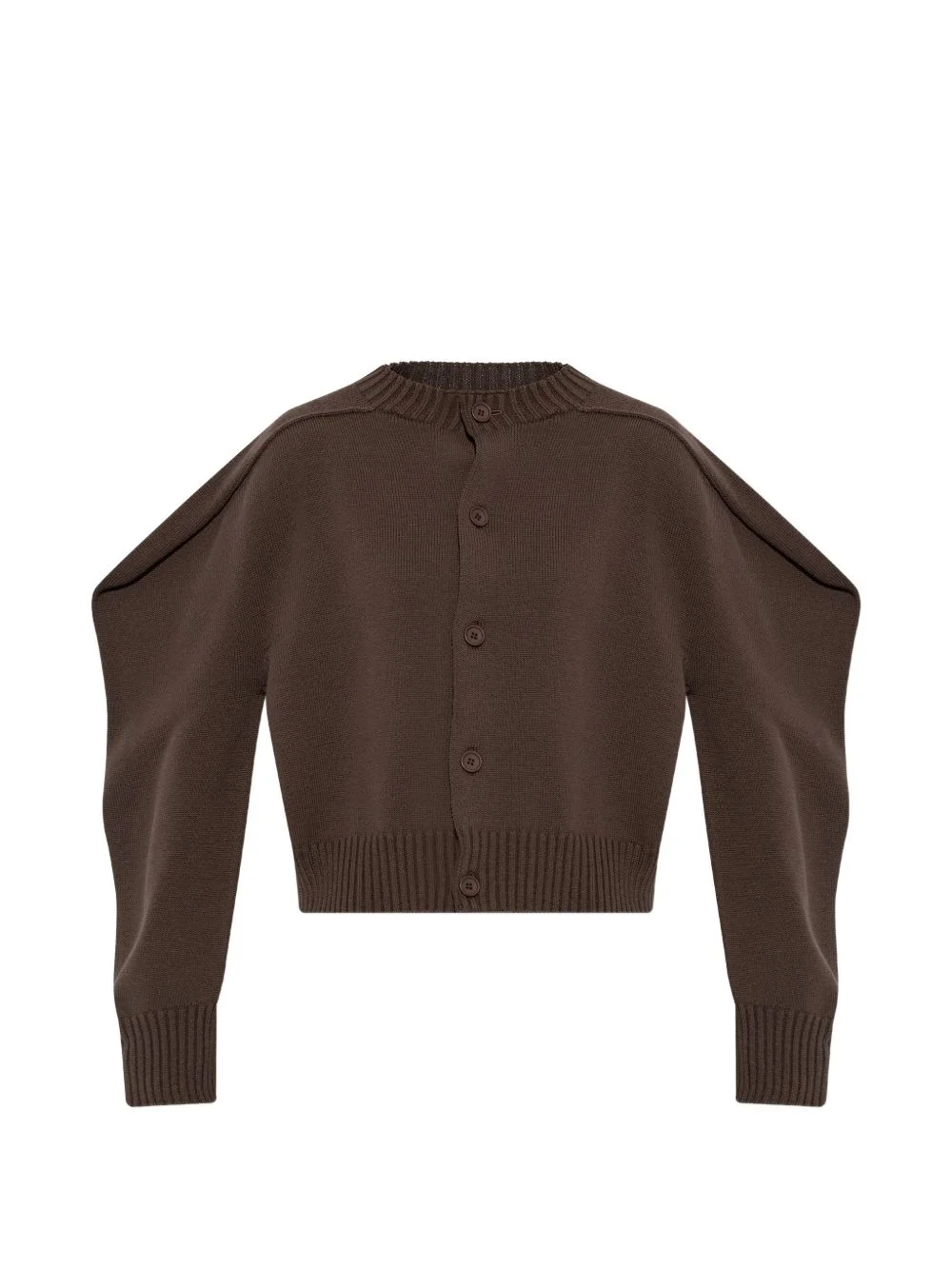buttoned knitwear Highlights - Brown - Button fastening - Ribbed hem - Ribbed cuffs - Round neck - Cotton Imported Composition Cotton 53%, Polyester 47%