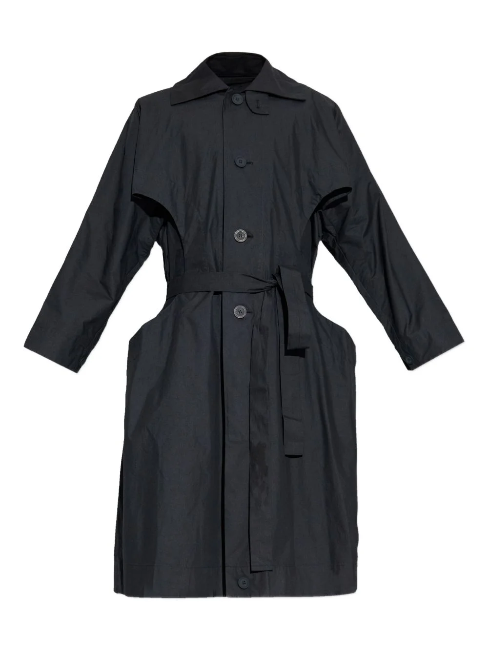 Cavity belted buttoned coat Highlights - Black - Belt - Button fastening - Long sleeves - Front pockets - Spread collar Imported Composition Cotton 80%, Nylon 20% Washing instructions Hand Wash