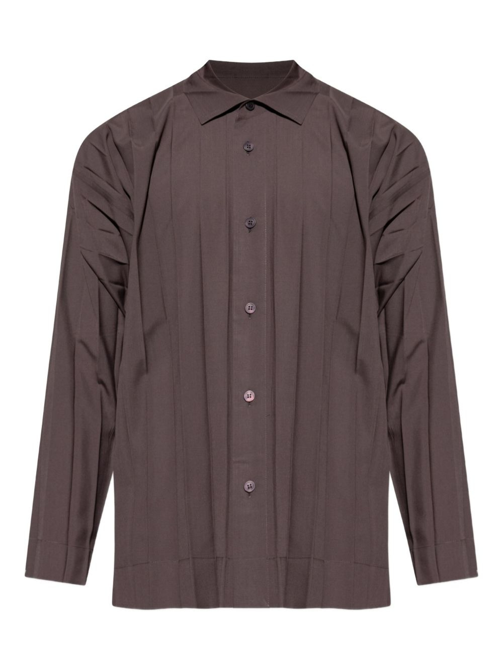 Edge pleated long-sleeve shirt Highlights - Dark brown - Pleated design - Long sleeves - Collared neckline - Front button fastening - Straight hem Imported Composition Polyester 100% Washing instructions Read Manufacturer Guidelines