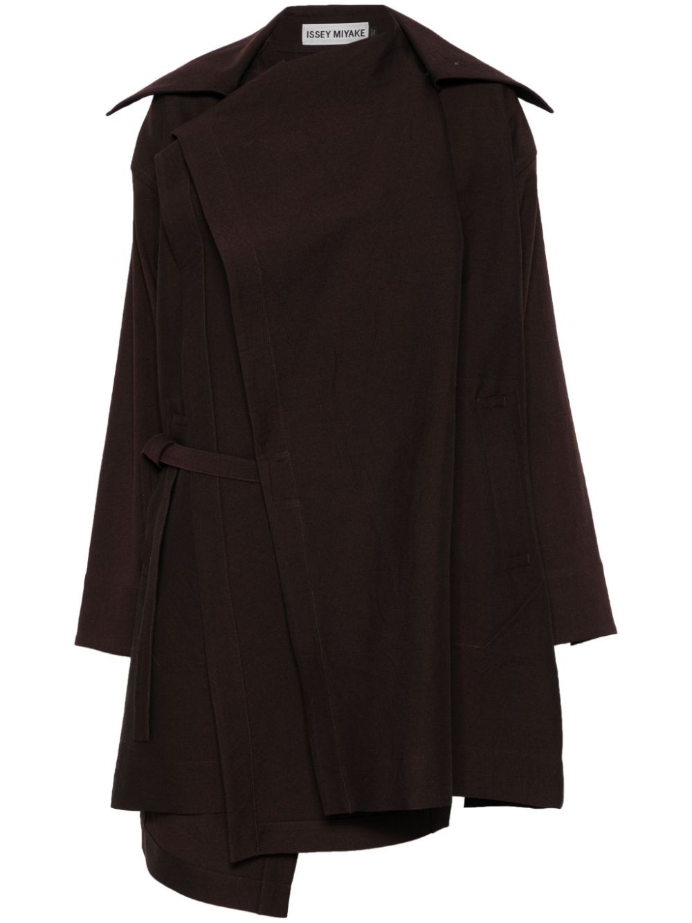 Enclothe coat Highlights - Chestnut brown - Concealed front button fastening - Self-tie fastening - Wrap design - Wide notch lapels - Long sleeves - Belt loops - Belted waist - Two side welt pockets - Unlined - Asymmetric hem Imported Composition Wool 46%, Paper 30%, Nylon 19%, Polyurethane 5%