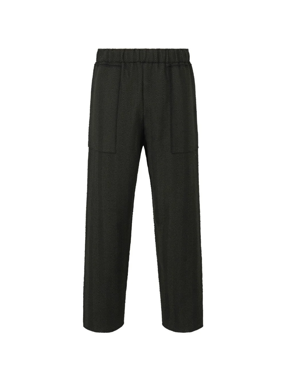 herringbone pocketed straight-leg trousers Highlights - Black - Herringbone pattern - Elasticated waistband - Two front patch pockets Imported Composition Polyester 100% Washing instructions Read Manufacturer Guidelines