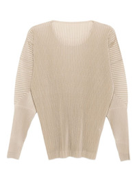 light-mesh T-shirt Highlights - Beige - Pleated design - Crew neck - Long sleeves Imported Composition Polyester 100% SIZE & FIT Model measurements Height 6 ft 2 in(1.88 m) Bust/Chest 33.46 in(85 cm) Hips 36.22 in(92 cm) Waist 27.55 in(70 cm) FittingInformation Designed for a relaxed fit, this piece allows for comfort and movement when worn Made from a midweight non-stretch fabric Washing instructions Machine Wash