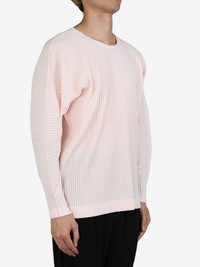 MC August T-shirt Highlights - Light pink - Fully pleated - Slip-on style - Crew neck - Long sleeves - Short side slits Imported Composition Polyester 100% SIZE & FIT FittingInformation Designed to be unstructured, offering a loose fit throughout Made from a midweight non-stretch fabric, this piece offers minimal elasticity when worn Washing instructions Dry Clean Only