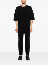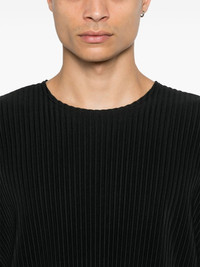 MC July T-shirt Highlights - Black - Fully pleated - Plisse effect - Round neck - Drop shoulder - Short sleeves - Straight hem Imported Composition Polyester 100% SIZE & FIT Model measurements Height 6 ft 1 in(1.85 m) Bust/Chest 35.82 in(91 cm) Hips 37.79 in(96 cm) Waist 29.13 in(74 cm) FittingInformation Designed to be unstructured, offering a loose fit throughout The pleated construction on this piece allows for additional movement and flexibility in the fit This piece fits true to size – take your usual size