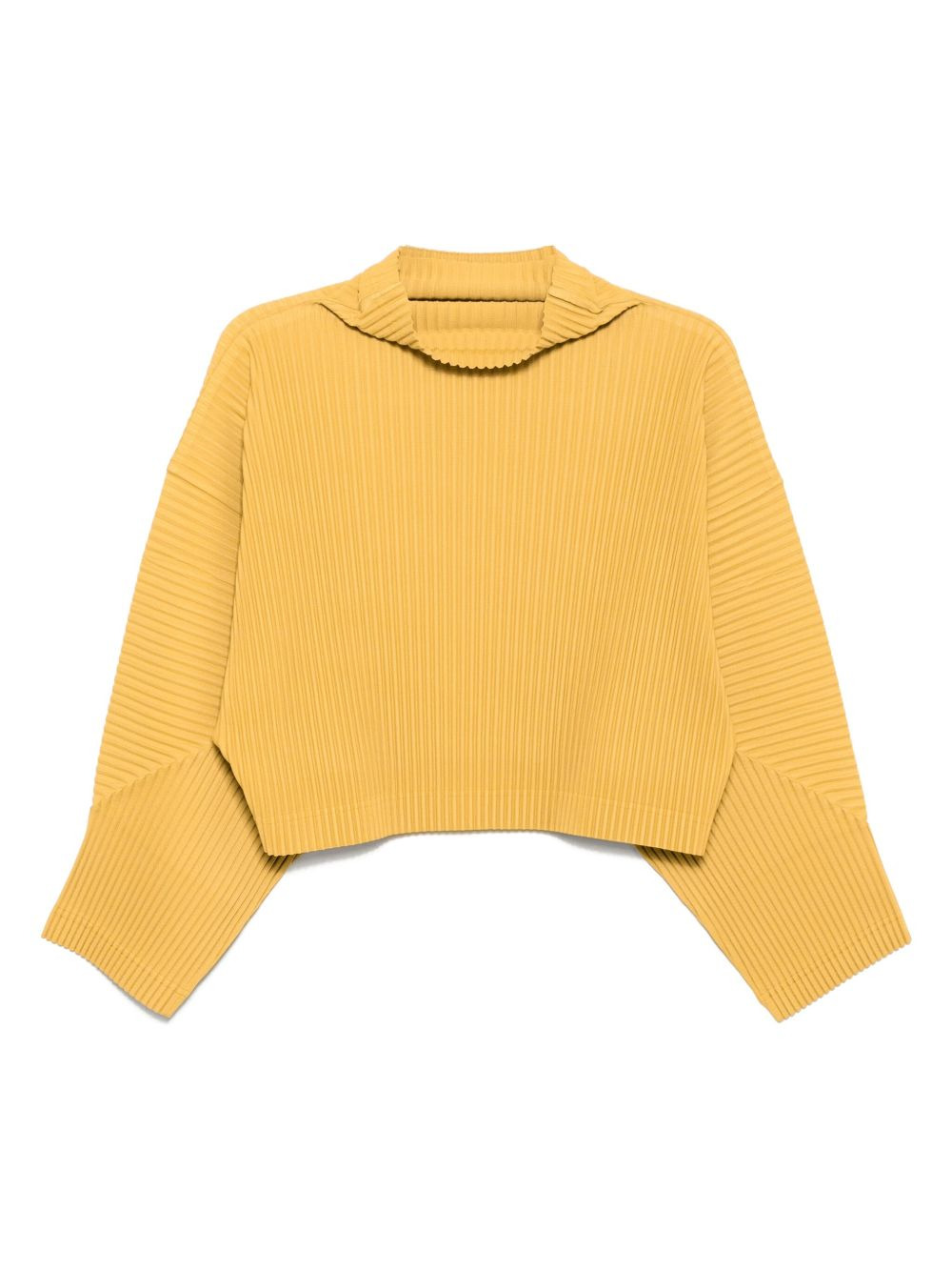 MC June pleated T-shirt Highlights - Mustard yellow - Mock neck - Long sleeves Imported Composition Polyester 100% SIZE & FIT Model measurements Height 6 ft 2 in(1.88 m) Bust/Chest 33.46 in(85 cm) Hips 36.22 in(92 cm) Waist 27.55 in(70 cm) FittingInformation Designed to be unstructured, offering a loose fit throughout Made from a midweight non-stretch fabric
