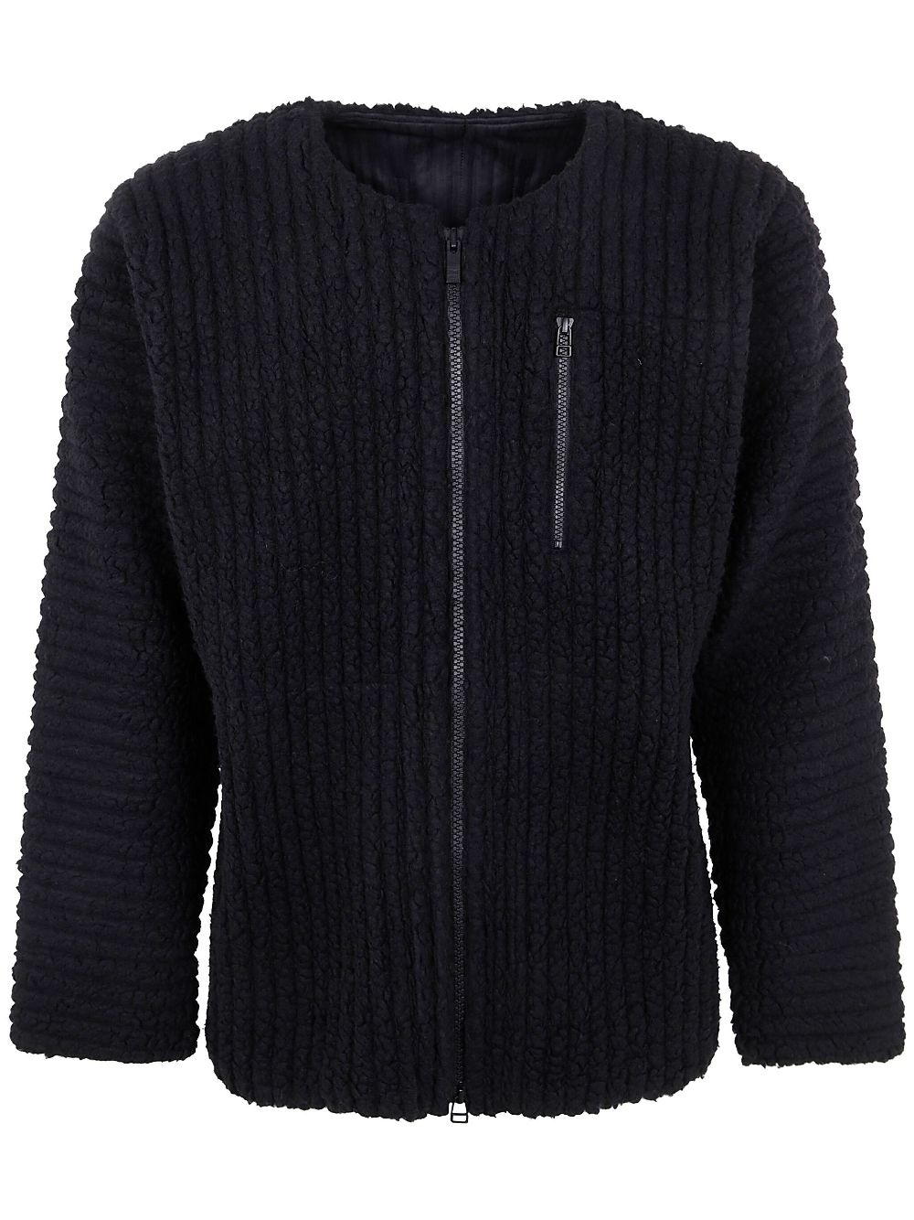 pleated fleece-texture jacket Highlights - Black - Front two-way zip fastening - Zip-fastening chest pocket - Applique logo - Round neck Imported Composition Lining: Polyester 100% Outer: Polyester 100%