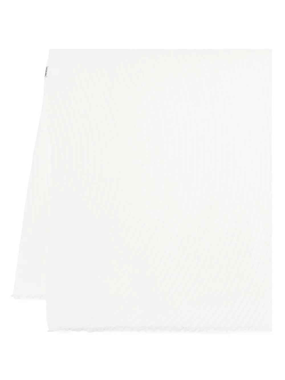 pleated scarf Highlights - White - Frayed edge - Rectangle shape Imported Composition Paper 50%, Polyester 50% SIZE & FIT Measurement LENGTH 62.99 in(160 cm) WIDTH 17.71 in(45 cm)