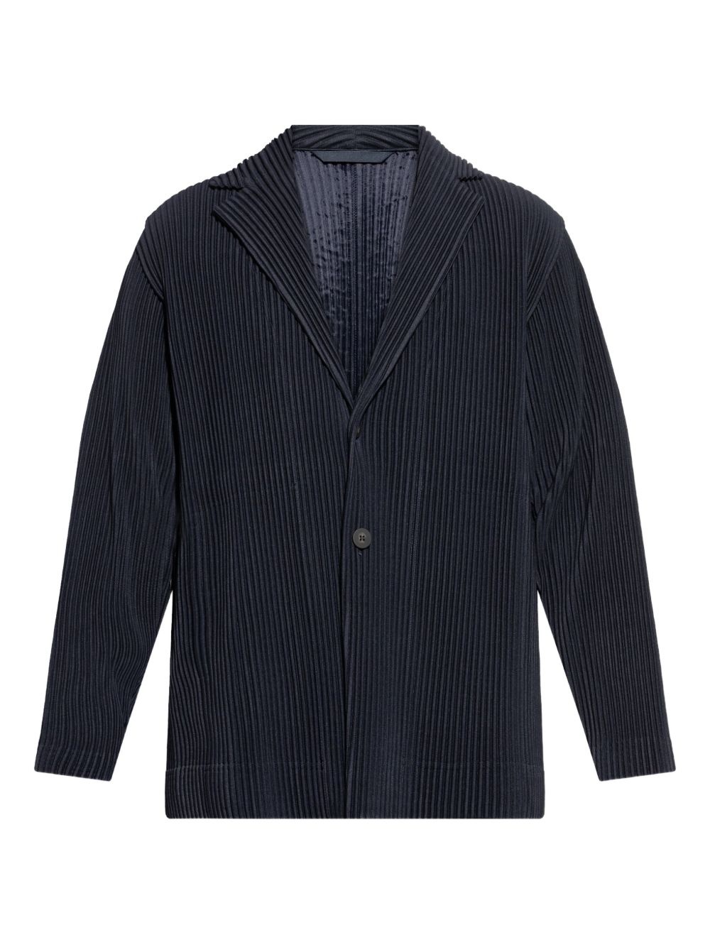 pleated single-breasted blazer Highlights - Navy blue - Front button fastening - Long sleeves - Straight hem Imported Composition Polyester 100%