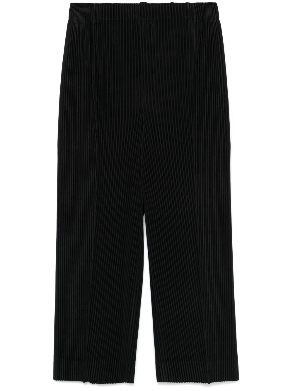 pleated trousers Highlights - Black - Elasticated waistband - Two side slash pockets - Plisse effect Imported Composition Polyester 100% SIZE & FIT Model measurements Height 6 ft 1 in(1.85 m) Bust/Chest 35.82 in(91 cm) Hips 37.79 in(96 cm) Waist 29.13 in(74 cm) Measurement FRONT RISE 14.01 in(35.6 cm) INSIDE LEG 27 in(68.6 cm) HIPS 35.98 in(91.4 cm) Hem Width 22 in(55.9 cm) WAIST 29.01 in(73.7 cm) FittingInformation Designed for a relaxed straight leg, allowing a comfortable and loose fit over the leg The elasticated waist allows for a comfortable fit The pleated construction on this piece allows for additional movement and flexibility in the fit