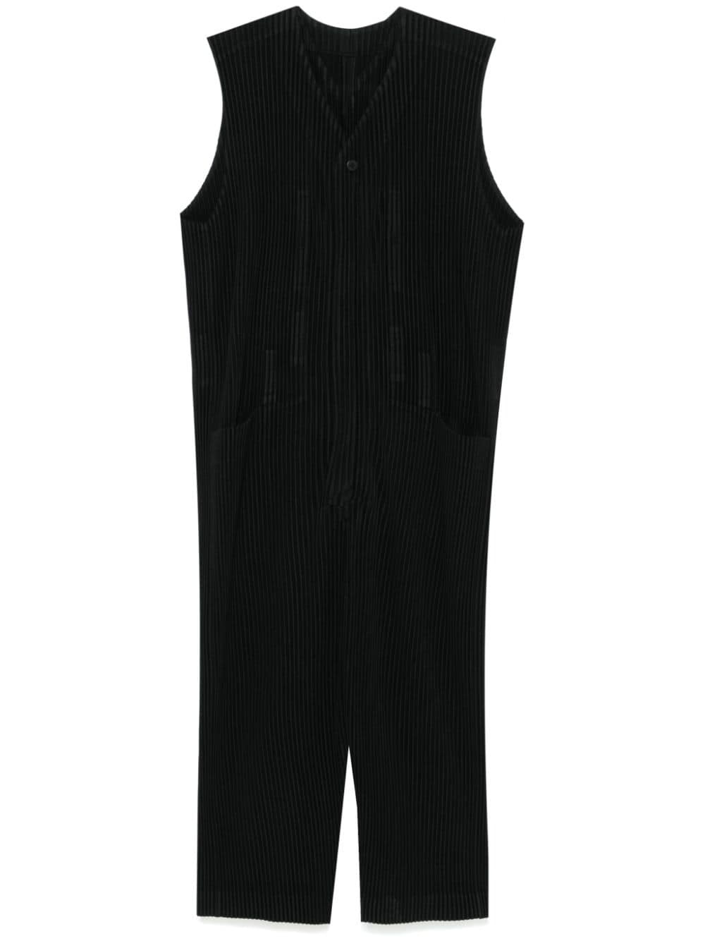 Pleats Bottoms 1 jumpsuit Highlights - Black - Front button and zip fastening - Fully pleated - Plisse effect - V-neck - Sleeveless - Two button-fastening chest pockets - Belt loops - Two side patch pockets - Drop crotch - Wide leg Imported Composition Polyester 100%