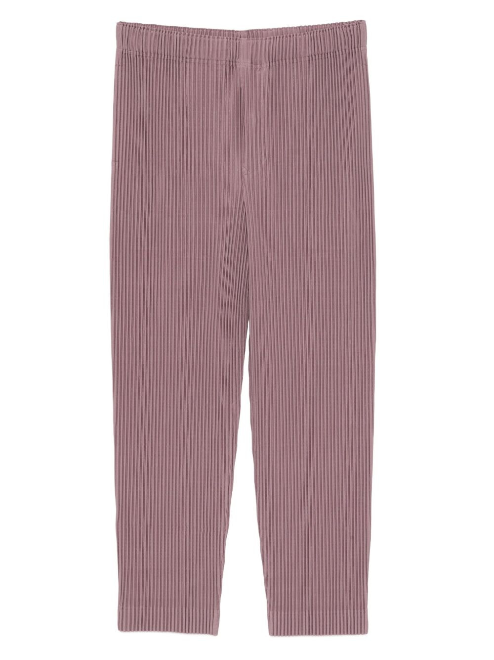 pleats trousers Highlights - Aubergine purple - Elasticated drawstring waistband - Two side welt pockets Imported Composition Polyester 100% SIZE & FIT Model measurements Height 6 ft 2 in(1.87 m) Bust/Chest 33.07 in(84 cm) Hips 35.43 in(90 cm) Waist 26.77 in(68 cm) FittingInformation Designed for a relaxed straight leg, allowing a comfortable and loose fit over the leg Adjust this piece’s waistband to your preference using the drawstring The pleated construction on this piece allows for additional movement and flexibility in the fit Washing instructions Machine Wash