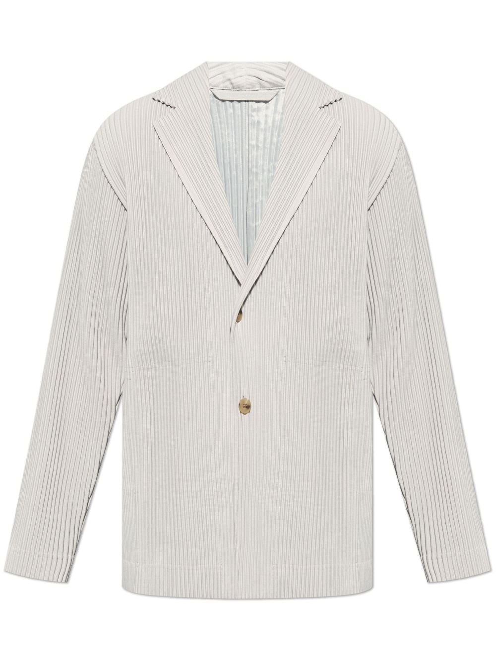 plisse-effect single-breasted blazer Highlights - Light grey - Plisse effect - Notched lapels - Front button fastening - Long sleeves - Buttoned cuffs - Two side slit pockets - Unlined - Rear slit - Straight hem Imported Composition Polyester 100% SIZE & FIT FittingInformation Designed to be unstructured, offering a loose fit throughout The pleated construction on this piece allows for additional movement and flexibility in the fit This piece fits true to size – take your usual size Washing instructions Read Manufacturer Guidelines