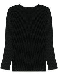 plisse-effect T-shirt Highlights - Black - Crew neck - Long sleeves - Straight hem Imported Composition Polyester 100%