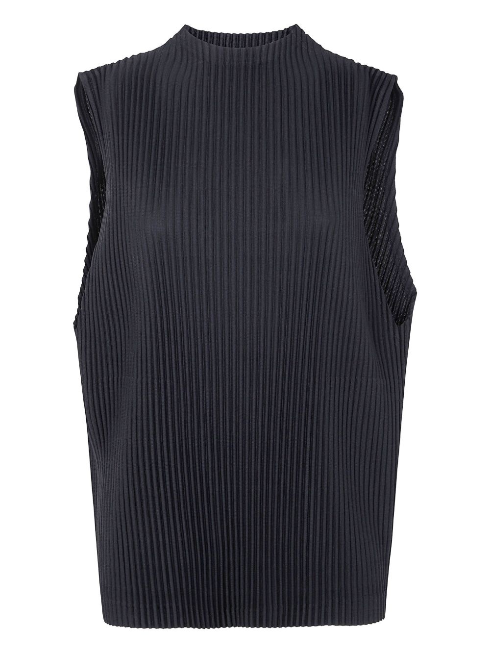 plisse-effect top Highlights - Black - Mock neck - Sleeveless - Straight hem Imported Composition Polyester 100%