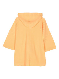 Mc June T-shirt Highlights - Light orange - Plisse effect - Drawstring hood - Press-stud placket - Drop shoulder - Half-length sleeves - Front pouch pocket - Straight hem Imported Composition Polyester 100% SIZE & FIT FittingInformation Designed for a relaxed fit, this piece allows for comfort and movement when worn The pleated construction on this piece allows for additional movement and flexibility in the fit Washing instructions Machine Wash