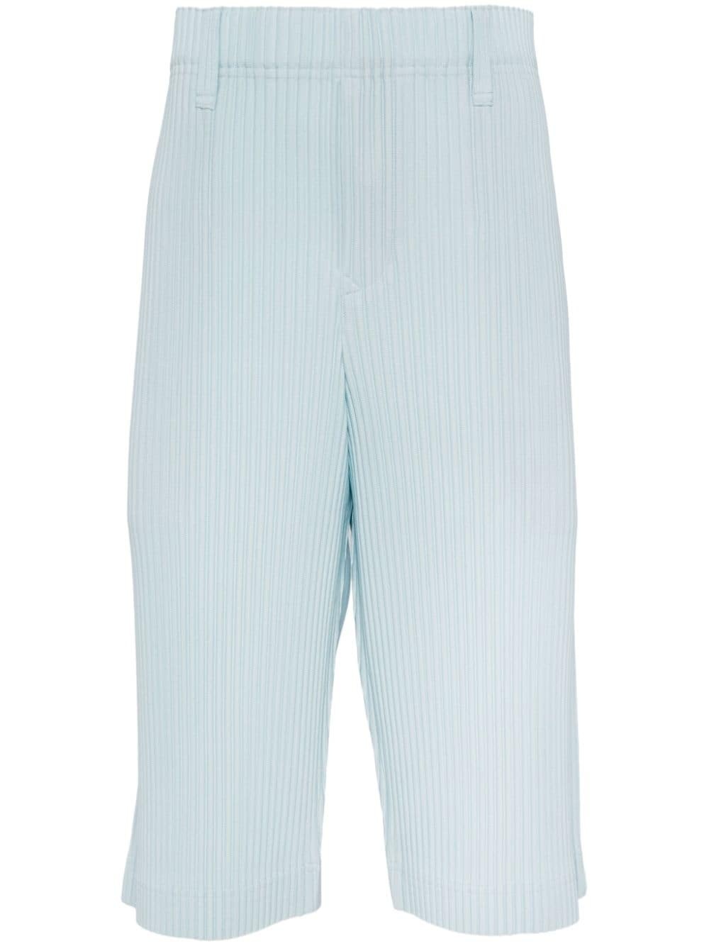plisse satin shorts Highlights - Baby blue - Plisse effect - Satin finish - Concealed front button, hook and zip fastening - Belt loops - Two side slit pockets - Below-knee length Imported Composition Polyester 100% SIZE & FIT Model measurements Height 6 ft 2 in(1.87 m) Bust/Chest 33.07 in(84 cm) Hips 35.43 in(90 cm) Waist 26.77 in(68 cm) FittingInformation Designed for relaxed fit, offering a comfortable loose fit over the leg The elasticated waist allows for a comfortable fit The pleated construction on this piece allows for additional movement and flexibility in the fit This piece fits true to size – take your usual size Washing instructions Machine Wash