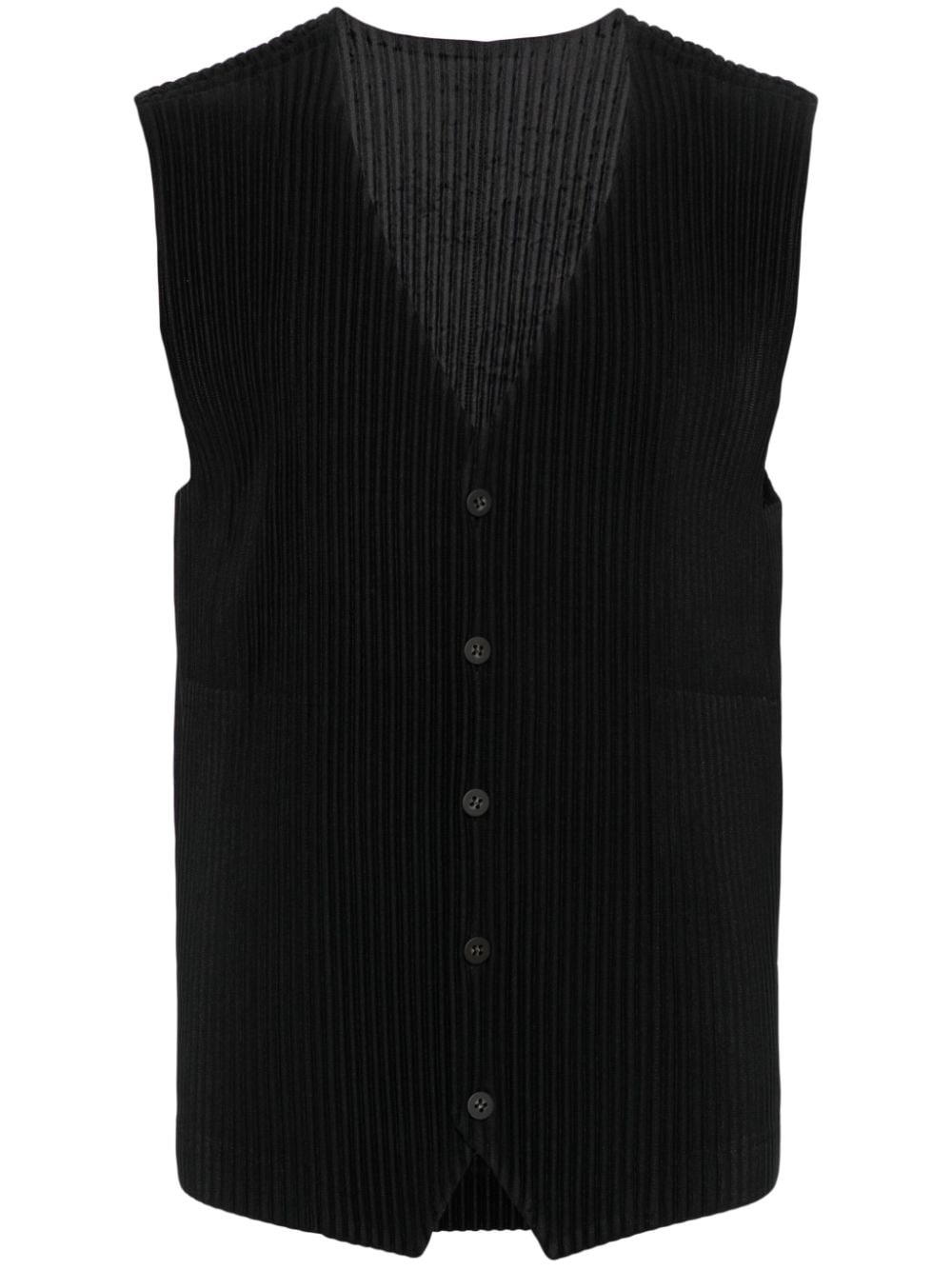 plisse vest Highlights - Black - Front button fastening - Fully pleated - Plisse effect - V-neck - Sleeveless - Two side slit pockets - Straight hem Imported Composition Lining: Polyester 100% Outer: Polyester 100% SIZE & FIT Model measurements Height 6 ft 2 in(1.87 m) Bust/Chest 35.82 in(91 cm) Hips 35.82 in(91 cm) Waist 31.88 in(81 cm) FittingInformation Designed for a slim fit, offering a comfortable fit that sits just away from the body The pleated construction on this piece allows for additional movement and flexibility in the fit