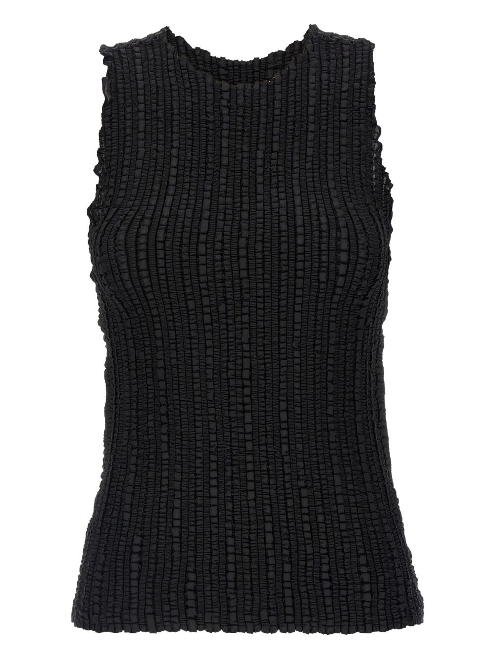 round-neck tank top Highlights - Black - Round neckline - Sleeveless - Jellyfish pleats Imported Composition Polyester 100% Washing instructions Read Manufacturer Guidelines