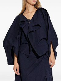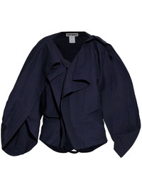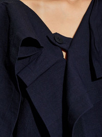 ruffled blouse Highlights - Navy blue - Front button fastening - Draped detailing - Split cuffs Imported Composition Paper 70%, Nylon 23%, Polyurethane 7% Washing instructions Read Manufacturer Guidelines