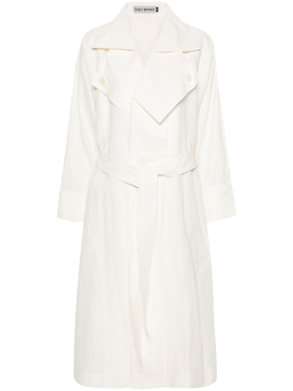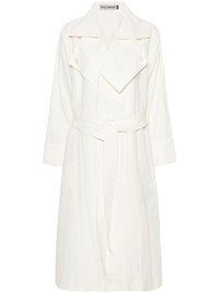 Shaped Membrane trench coat Highlights - Off-white - Linen/flax - Textured finish - Box-pleat detail - Wide notch lapels - Double-breasted button fastening - Long raglan sleeves - Buttoned turn-up cuffs - Detachable belt - Belt loops - Two side welt pockets - Straight hem - Long length Imported Composition Linen/Flax 100% Washing instructions Dry Clean Only