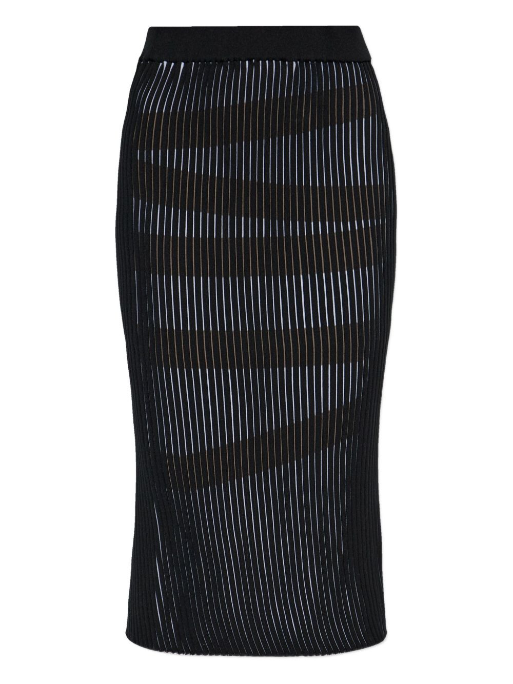 striped slit skirt Highlights - Black - Striped design - Rear slit - Pleated - Elasticated waistband Imported Composition Polyester 78%, Cotton 22% Washing instructions Read Manufacturer Guidelines