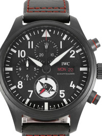 2022 Pilot's "Tophatters" 44.5mm Highlights - 2022 - Pre-owned - 44.5mm - Round face - Black - Arabic dial - Index dial - Sword hands - Sweeping second hand - Date indication - Chronograph counters - Screw-down crown - Two chronograph pushers - Engraved case back - Leather strap - Contrast stitching - Clasp fastening - Automatic movement - Water resistance up to 60m/6 atm - 46-hour power reserve - All repairs of the movement of the watch and the repairs of water-resistant watches with water damage are covered by the chronext two-year warranty. - An inspection by the chronext-certified watchmakers guarantees authenticity. Imported Composition Other Materials 100% SIZE & FIT Measurement Case size 1.75 in(44.5 mm) Case thickness 0.61 in(15.7 mm)
