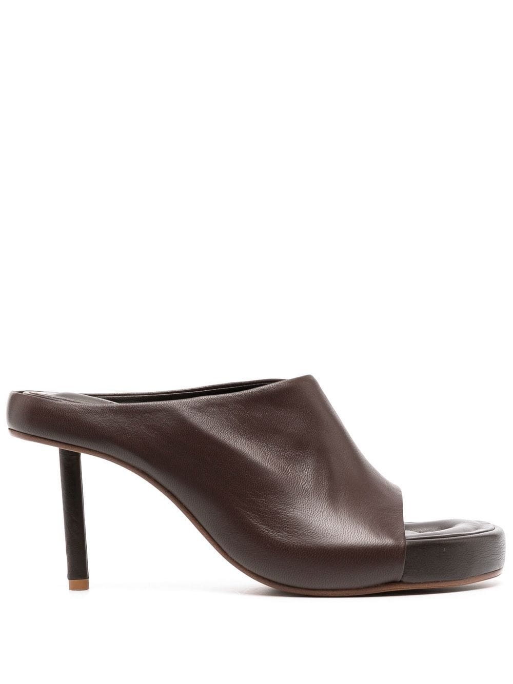85mm leather sandals Following the brand's minimal approach, these Nuvola mules from Jacquemus arrive in an all-black hue. They’re made from smooth, leather with ergonomic footbeds and rounded open toes. Highlights - Chocolate brown - Calf leather - Leather lining - Open toe - Slip-on style - Stiletto heel Made in Italy Composition Outer: Calf Leather 100% Lining: Calf Leather 100% Sole: Calf Leather 100% SIZE & FIT Measurement HEEL 3.93 in(10 cm) Sole height 0.98 in(2.5 cm)