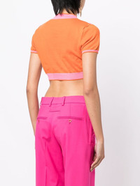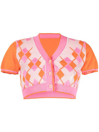 argyle-check-pattern cropped top orange/pink/beige cotton blend knitted construction argyle check pattern front button fastening short sleeves cropped Made in Italy Composition Cotton 70%, Polyamide 30% SIZE & FIT Model measurements Height 5 ft 10 in(1.77 m) Bust/Chest 31.49 in(80 cm) Hips 35.43 in(90 cm) Waist 25.19 in(64 cm) FittingInformation This piece fits true to size. We recommend you get your regular size Cut for a slim fit Made with a lightweight fabric Washing instructions Hand Wash