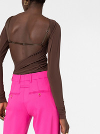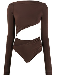 asymmetric cropped bodysuit Jacquemus offers contemporary style with this bodysuit. It is finished with an asymmetric crop that sweeps across the torso for a modern twist on a staple. Imported Composition Polyamide 93%, Spandex/Elastane 7% SIZE & FIT Model measurements Height 5 ft 11 in(1.8 m) Bust/Chest 32.67 in(83 cm) Hips 36.22 in(92 cm) Waist 24.4 in(62 cm) FittingInformation This piece fits true to size. We recommend you get your regular size Cut for a close fit Made with a mid-weight stretch fabric Washing instructions Hand Wash