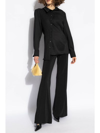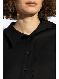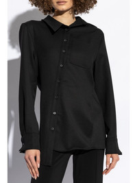 asymmetric long-sleeve shirt Highlights - Black - Cotton - Off-centre front button fastening - Classic collar - Chest patch pocket - Long sleeves - Buttoned cuffs - Asymmetric hem Imported Composition Cotton 100%
