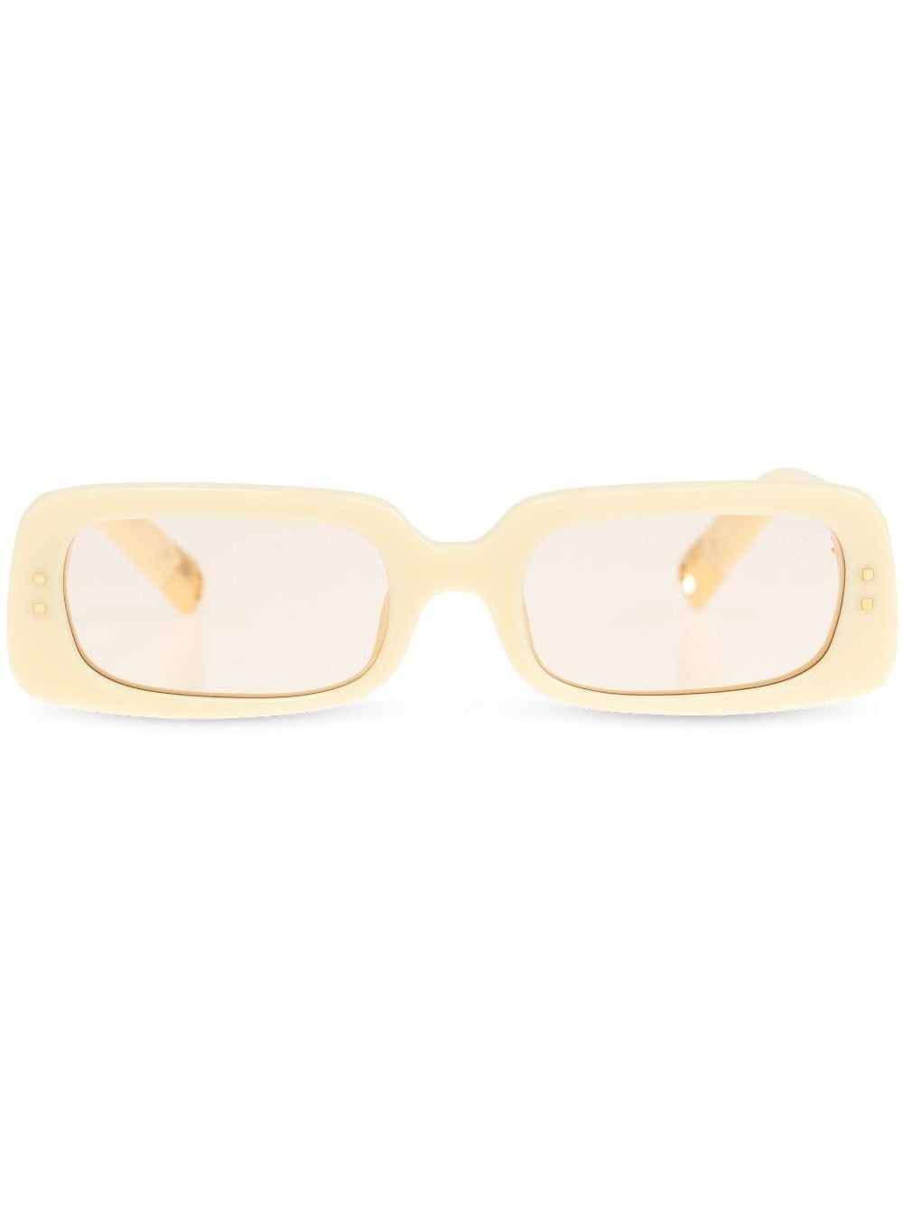 Azzuro sunglasses Highlights - Light yellow - Brown tinted lenses - Uv protection - Rectangle frame - Logo print at the arm - Straight arms - Straight tips - These glasses come with a protective case. Made in Italy Composition Acetate 100%