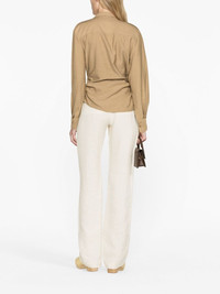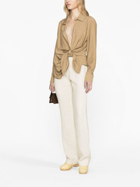La Chemise Bahia draped shirt Jacquemus offers a laidback take on the humble shirt. This breezy blouse has a spread collar and open front accented with a tied sash detail in place of traditional buttons. Highlights - Beige - Cutaway collar - Knot detailing - Long sleeves Imported Composition Viscose 88%, Polyamide 12% SIZE & FIT Model measurements Height 5 ft 9 in(1.75 m) Bust/Chest 31.49 in(80 cm) Hips 34.05 in(86.5 cm) Waist 24.21 in(61.5 cm)