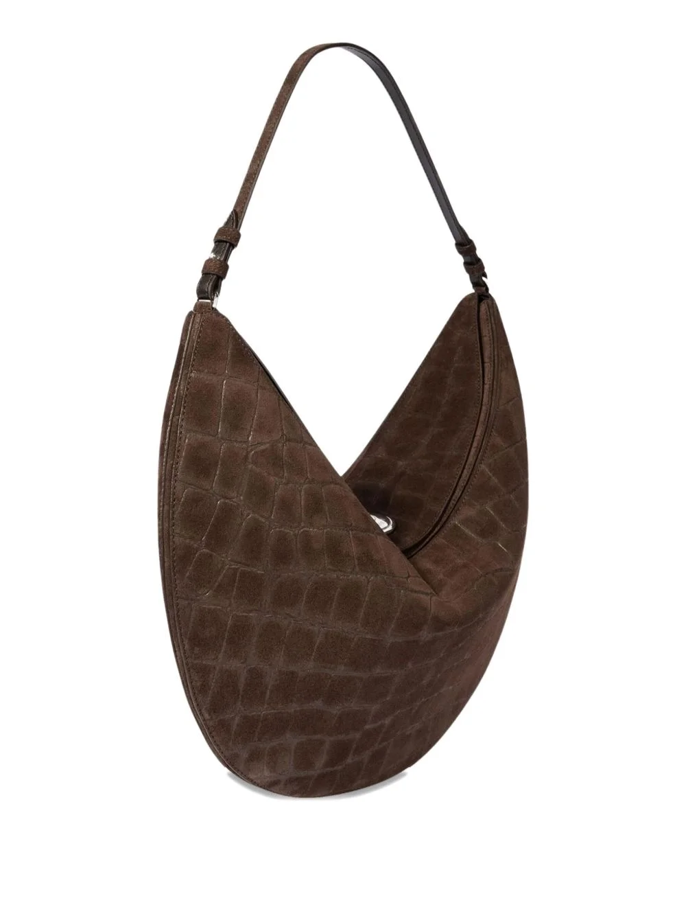 Le Calisso Rond shoulder bag Highlights - Dark brown - Crocodile effect - Half-moon shape - Single top handle - Press-stud fastening - Natural cotton material Made in Italy Composition Lining: Cotton 100% Outer: Leather 100% SIZE & FIT Measurement DEPTH 4.72 in(12 cm) HEIGHT 9.44 in(24 cm) WIDTH 18.5 in(47 cm)