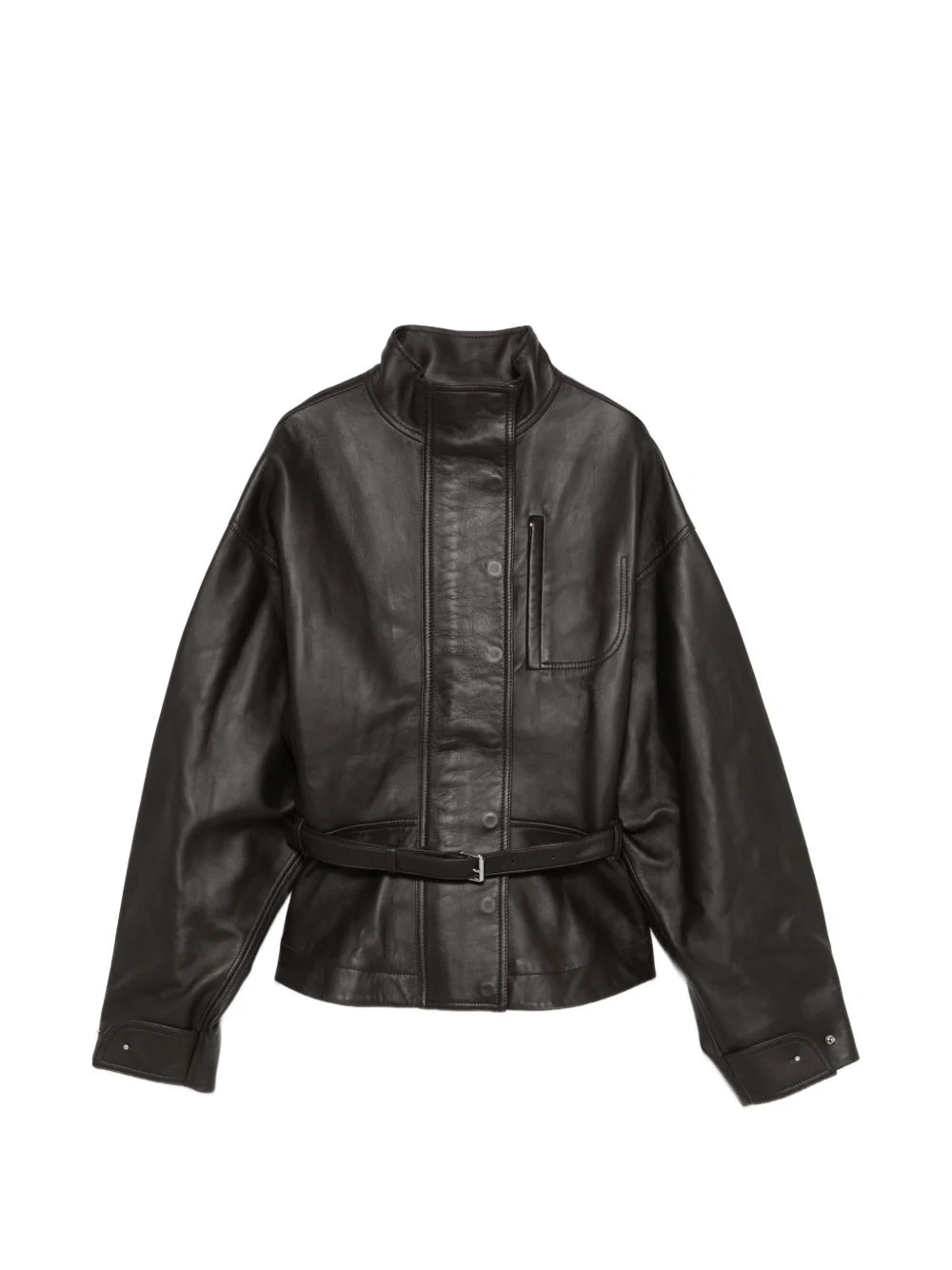 belted jacket Highlights - Dark brown - Belt - Zip fastening - Zip pocket - Buttoned cuffs Made in Italy Composition Outer: Calf Leather 100% Lining: Viscose 52%, Cotton 48% Washing instructions Specialist Cleaning