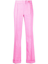 Le Pantalon Fresa tailored trousers Jacquemus is synonymous with innovative, minimalist design. This is showcased on this pair of tailored trousers from the brand's SS22 collection through a bright pink colourway and refined construction. Highlights - Pink linen button-fastening tailored trousers from jacquemus featuring tonal design, side button fastening, belt loops, two rear welt pockets, pressed crease and turn-up cuffs. Imported Composition Outer: Polyamide 52%, Linen/Flax 48% Lining: Acetate 48%, Cotton 46%, Spandex/Elastane 6% SIZE & FIT Model measurements Height 5 ft 9 in(1.76 m) Bust/Chest 33.07 in(84 cm) Hips 34.64 in(88 cm) Waist 25.59 in(65 cm) FittingInformation This piece fits true to size. We recommend you get your regular size Designed to be fitted at the waist and through the thigh, loose from the knee Made with a mid-weight non-stretch fabric Washing instructions Dry Clean Only