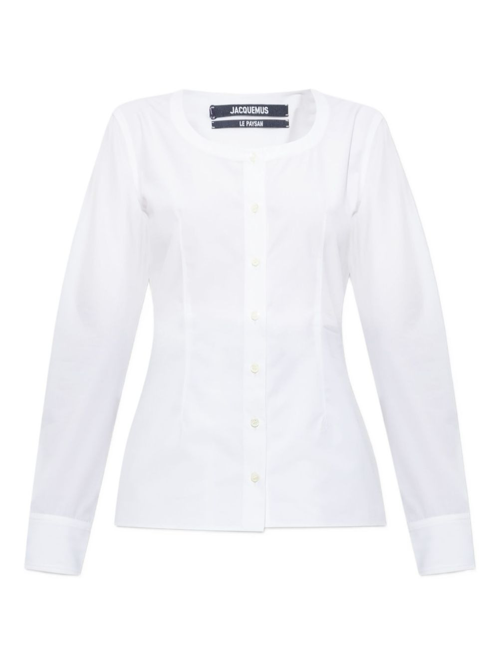 button-front long-sleeve blouse Highlights - White - Round neck - Long sleeves - Button front - Natural cotton Imported Composition Cotton 100% Washing instructions Read Manufacturer Guidelines