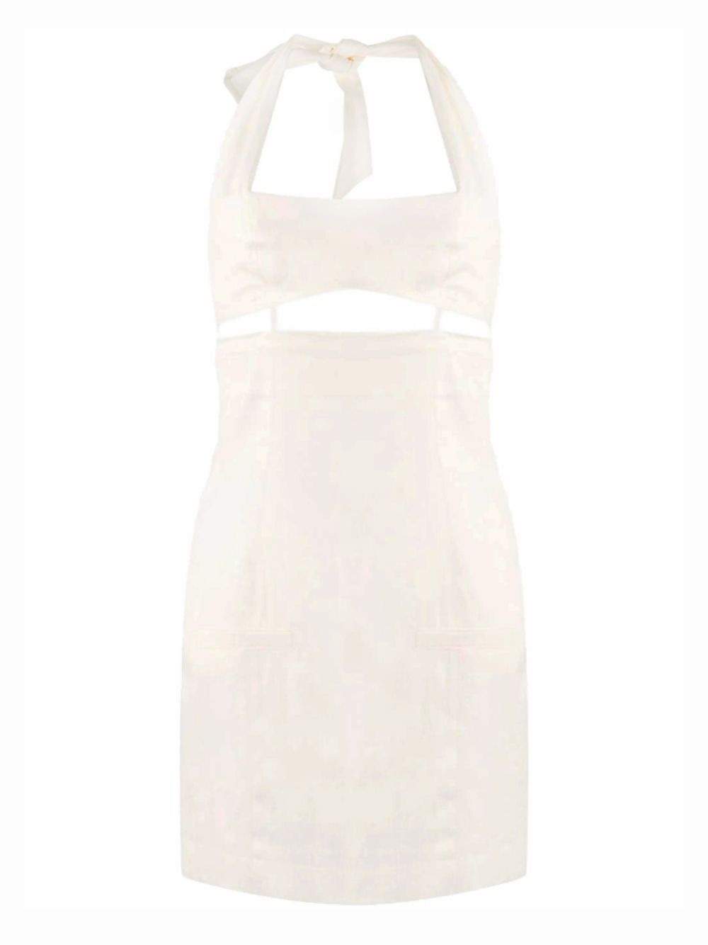 cut-out halter dress This Jacquemus dress features cutouts at the waist and a halter-neck tie fastening, contributing to the brand's signature cutting-edge aesthetic. Imported Composition Outer: Polyamide 52%, Linen/Flax 48% Lining: Acetate 48%, Cotton 46%, Elastane 6% SIZE & FIT FittingInformation This piece fits true to size. We recommend you get your regular size Designed for a close fit at the bust, waist and hips Made with a mid-weight non-stretch fabric