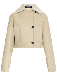 double-breasted shearling jacket Highlights - Beige - Front button fastening - Long sleeves - Two side slit pockets - Cropped Imported Composition Outer: Sheep Skin/Shearling 100% Lining: Cotton 100%
