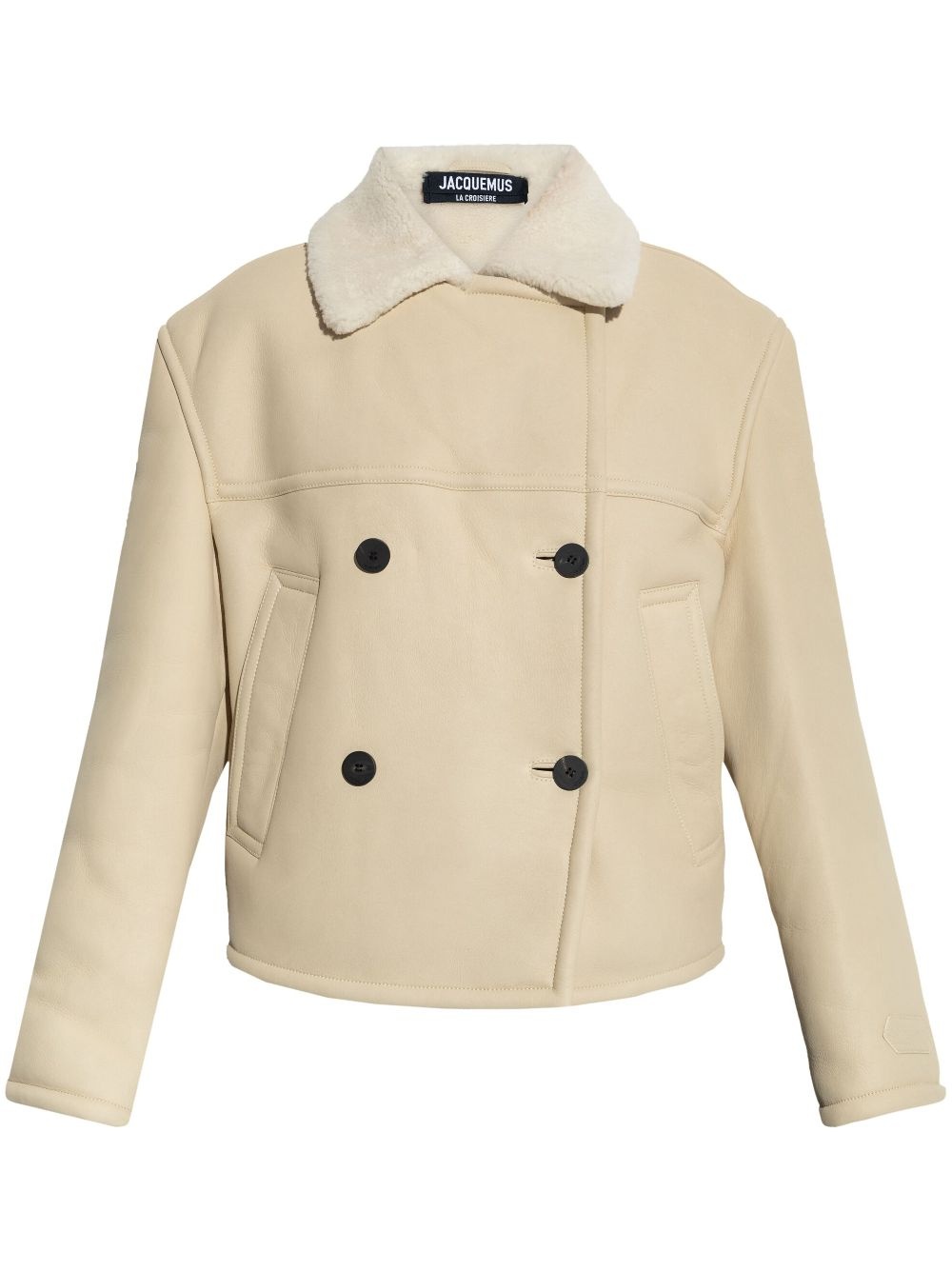 double-breasted shearling jacket Highlights - White - Front button fastening - Long sleeves - Two side slit pockets Imported Composition Outer: Sheep Skin/Shearling 100% Lining: Cotton 100%