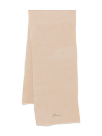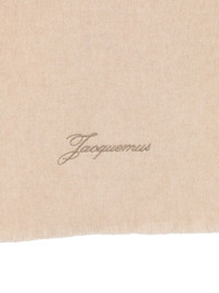 embroidered wool scarf Highlights - Bufanda de lana y cashmere en beis con logo bordado.80% lana 20% cachemira Made in Italy Composition Wool 80%, Cashmere 20% SIZE & FIT Measurement LENGTH 82.67 in(210 cm) WIDTH 17.71 in(45 cm) Washing instructions Dry Clean Only