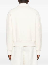 felt wool bomber jacket Highlights - Off-white - Virgin wool - Front button fastening - Ribbed hem - Ribbed cuffs - Front welt pockets Imported Composition Outer: Virgin Wool 100% Lining: Acetate 47%, Cotton 46%, Elastane 5% SIZE & FIT Model measurements Height 6 ft 2 in(1.87 m) Bust/Chest 36.41 in(92.5 cm) Hips 37 in(94 cm) Waist 29.52 in(75 cm) Washing instructions Dry Clean Only