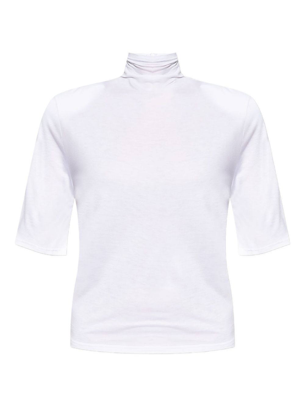 high-neck top Highlights - White - High neck - Half-length sleeves Imported Composition Viscose 88%, Silk 12% Washing instructions Read Manufacturer Guidelines