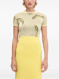 intarsia-knit T-shirt Highlights - Yellow - V-neck - Spread collar - Short sleeves Imported Composition Viscose 91%, Polyester 6%, Elastane 3%
