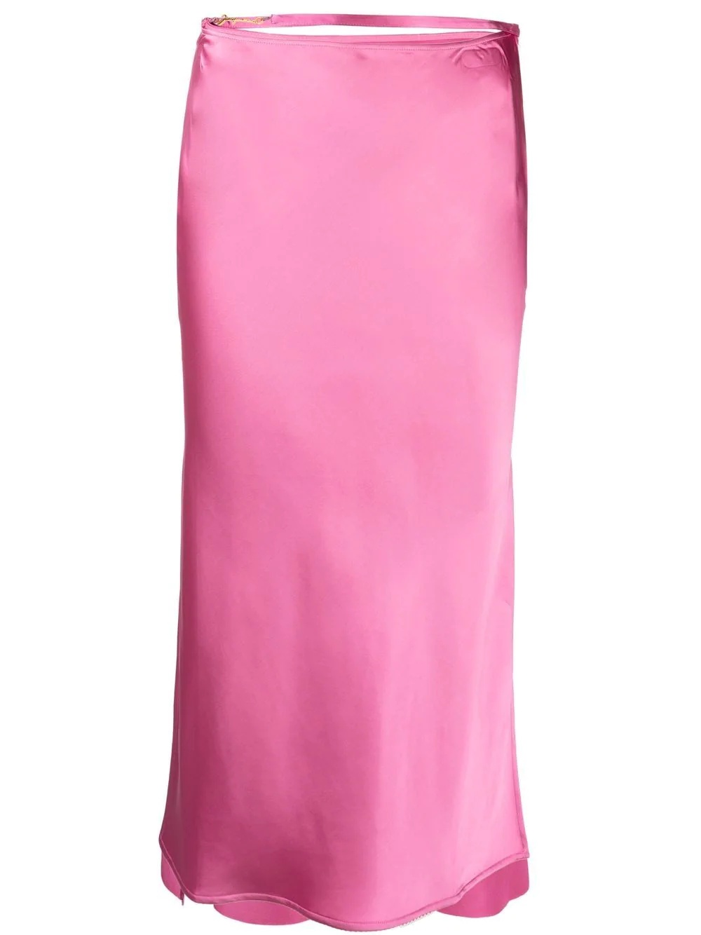 La Jupe Notte midi skirt The signature minimalist and contemporary design style of Jacquemus is showcased on this high-waisted skirt. Featuring a tonal colourway, this draws attention to small, opulent details such as the logo plaque at the side of the design. Highlights - Pink - Satin finish - High waist - Strap detailing - Logo plaque - Gold-tone hardware Imported Composition Viscose 96%, Spandex/Elastane 4% SIZE & FIT Model measurements Height 5 ft 10 in(1.79 m) Bust/Chest 31.49 in(80 cm) Hips 35.03 in(89 cm) Waist 23.62 in(60 cm) FittingInformation This piece fits true to size. We recommend you get your regular size Designed to be fitted at the waist and hips, loose over the leg Made with a lightweight stretch fabric Washing instructions Dry Clean Only