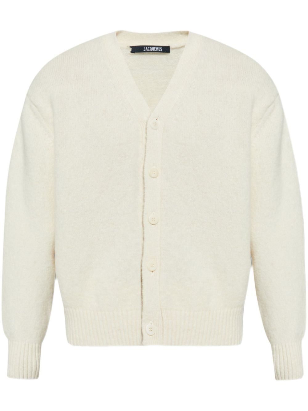 Jacquemus cardigan Highlights - White - Front button fastening - V-neck - Long sleeves - Ribbed-knit edge Imported Composition Alpaca 56%, Polyamide 34%, Merino 10%