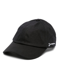 La Casquette Jacquemus baseball cap This cap from Jacquemus lends itself to a casual aesthetic, thanks to a minimally decorated design that features logo embroidered detailing to the side for a branded finish. Highlights - Black - Cotton - Six-panel construction - Embroidered logo to the side - Curved peak - Adjustable strap to the rear Made in Italy Composition Cotton 100% SIZE & FIT Measurement BRIM 2.55 in(6.5 cm) CIRCUMFERENCE 22.83 in(58 cm) Washing instructions Hand Wash