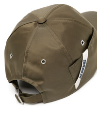 La Casquette Ovalie cap Highlights - Khaki green - Shell - Metal eyelet detailing - Logo patch to the side - Patch detail - Silver-tone hardware - Six-panel construction - Curved peak - Fabric-covered button at the crown - Adjustable strap to the rear - Cotton lining Made in Italy Composition Outer: Polyamide 90%, Acrylic 10% Lining: Cotton 100% SIZE & FIT Measurement BRIM 2.75 in(7 cm) CIRCUMFERENCE 22.04 in(56 cm) Washing instructions Dry Clean Only