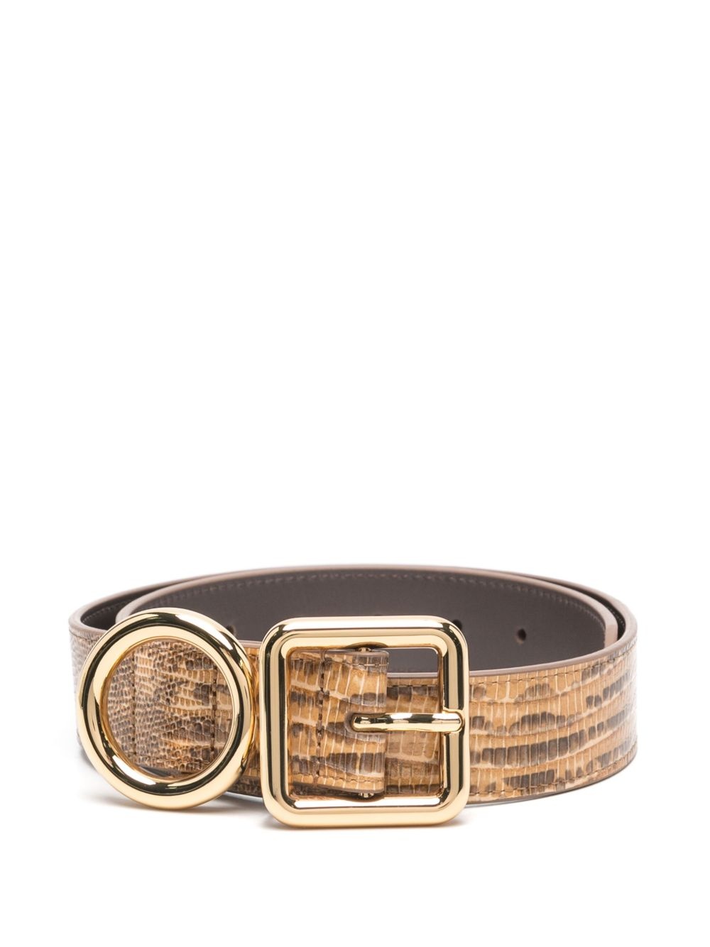 La Ceinture Regalo belt Highlights - Sand beige - Tang-buckle fastening - Punched holes - Ring hardware detailing - Lizard-skin effect Made in Italy Composition Calf Leather 100% SIZE & FIT Measurement Maximum Length 31.88 in(81 cm) Minimum Length 27.95 in(71 cm) WIDTH 1.57 in(4 cm)