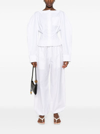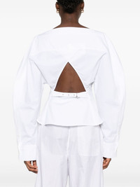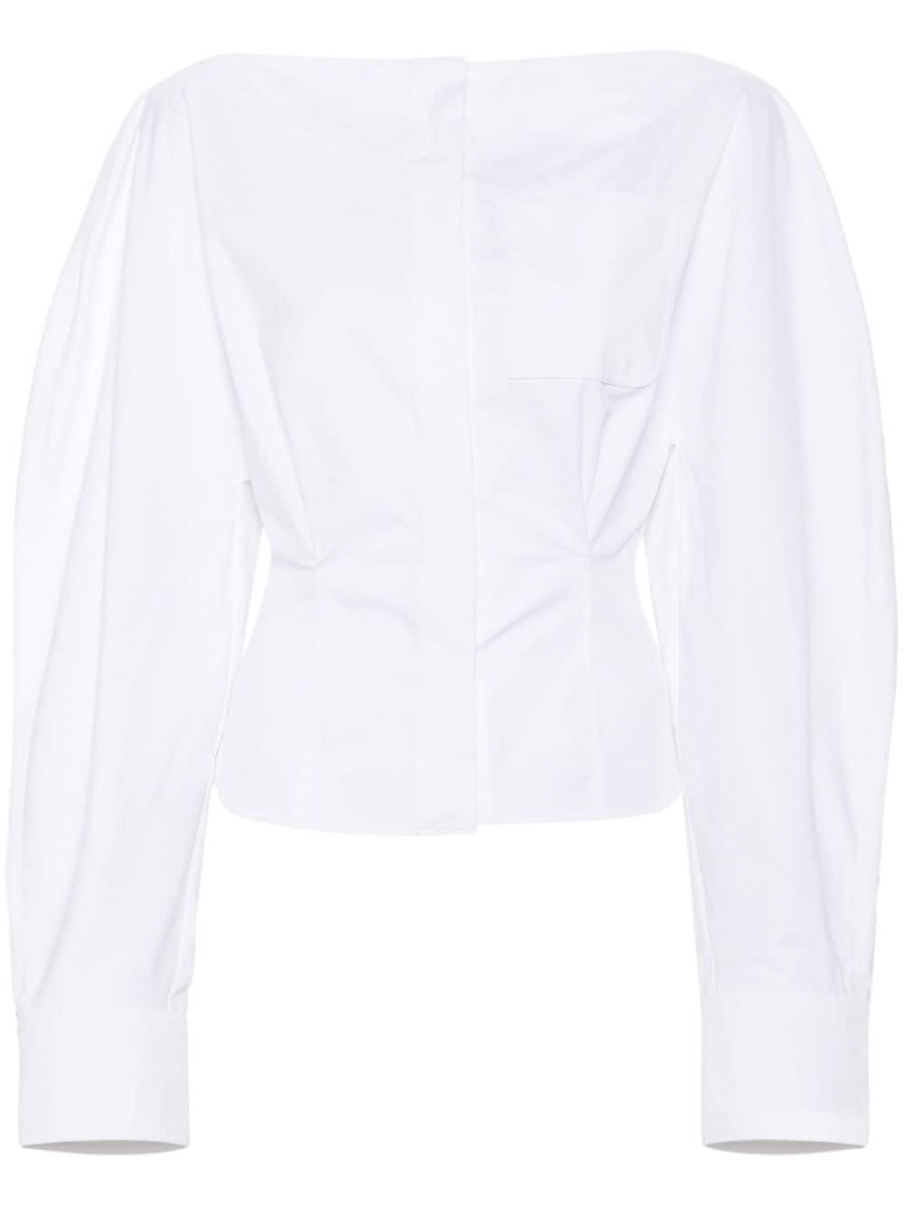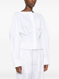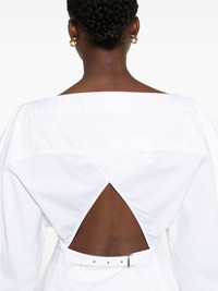La Chemise Barco shirt Highlights - White - Cotton - Poplin texture - Dart detailing - Cut-out detailing - Boat neck - Concealed front button fastening - Rear buckle fastening - Long sleeves - Buttoned cuffs - Chest patch pocket - Straight hem Imported Composition Cotton 100% SIZE & FIT Model measurements Height 5 ft 10 in(1.78 m) Bust/Chest 31.49 in(80 cm) Hips 37 in(94 cm) Waist 23.62 in(60 cm) FittingInformation Designed for a loose fit at the chest with a close fit over the waist and hips The belt offers adjustability for fitted preferences Made from a midweight non-stretch fabric This piece fits true to size – take your usual size