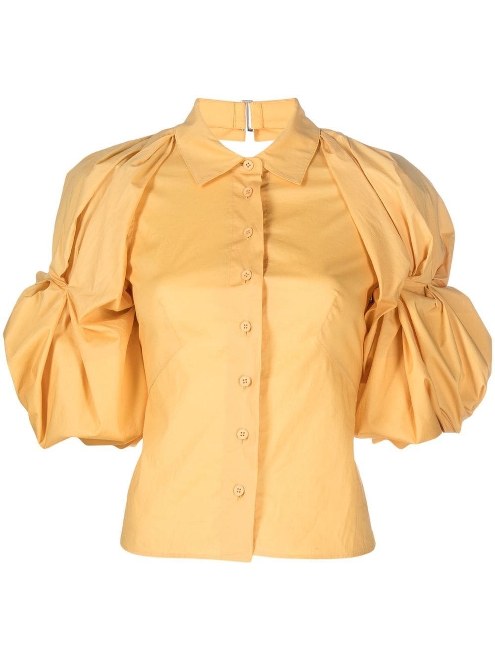 La Chemise Maraca shirt This La Chemise Maraca shirt from Jacquemus speaks to the label’s unconventional approach. Imagined in a lemon-yellow hue, it’s elevated with exaggerated puff sleeves and a circular back cut-out. In contrast, the poplin composition, point collar and button-up front make for more traditional design details. Imported Composition Cotton 98%, Elastane 2% SIZE & FIT Model measurements Height 5 ft 10 in(1.78 m) Bust/Chest 30.7 in(78 cm) Hips 34.64 in(88 cm) Waist 23.22 in(59 cm) FittingInformation This piece fits true to size. We recommend you get your regular size Cut for a slim fit Made with a mid-weight stretch fabric Measurement BUST 30 in(76.2 cm) LENGTH 20 in(50.8 cm) WAIST 27.99 in(71.1 cm) SLEEVE LENGTH 10.62 in(27 cm) Washing instructions Hand Wash